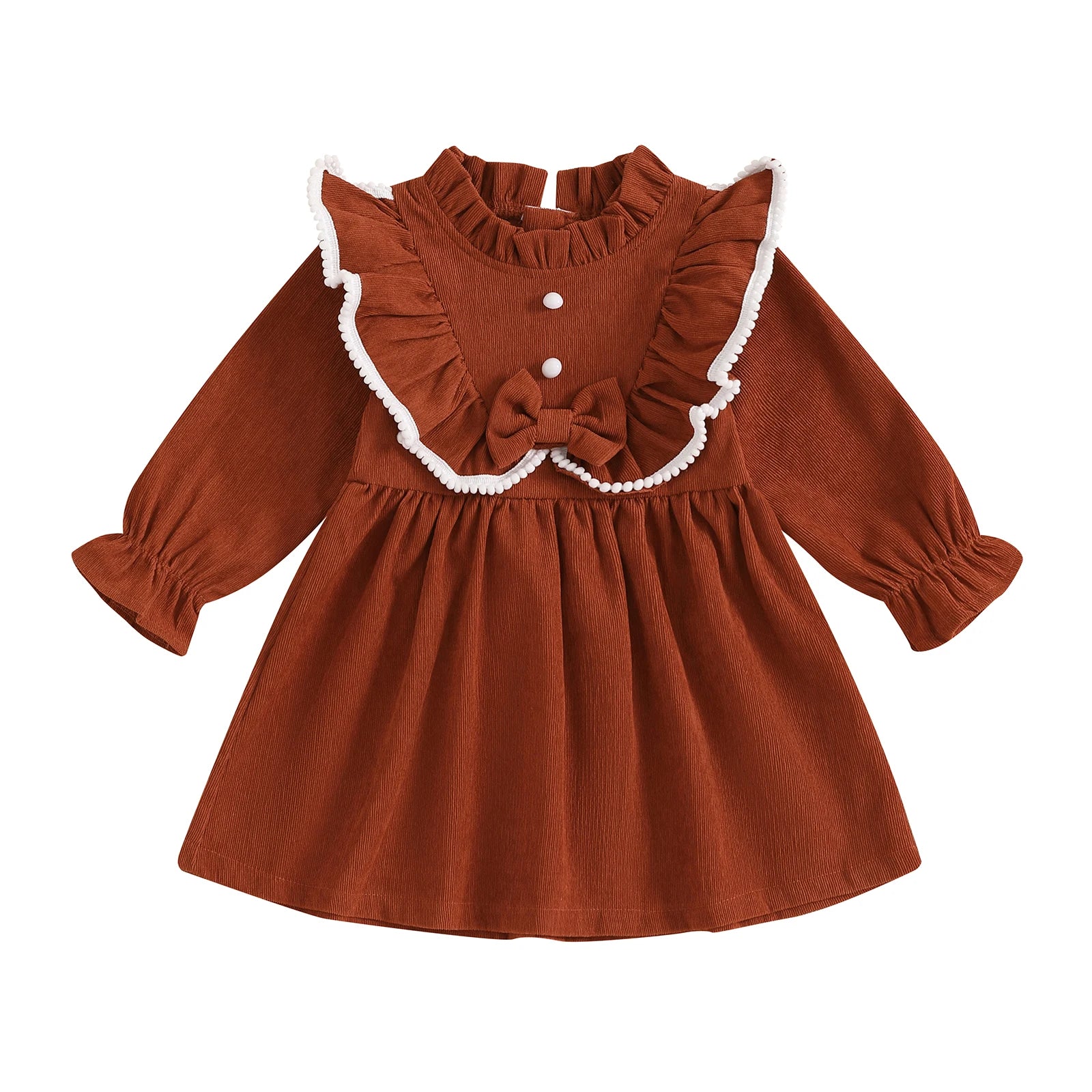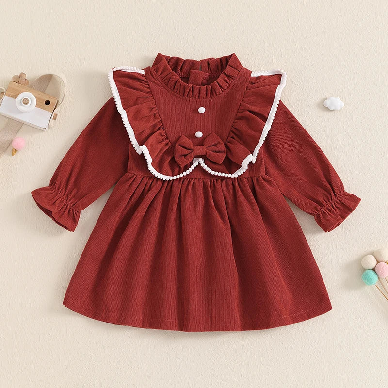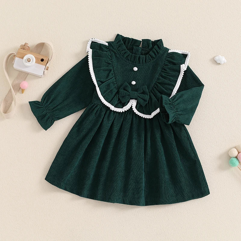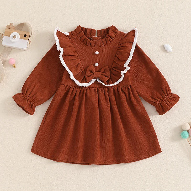 Introduce your little one to fall fashion with this adorable corduroy A-line dress—soft, stylish, and perfect for crisp autumn days. Designed with comfort in mind, it combines a cute ruffled neckline with a classic silhouette, making it a must-have for your toddler’s seasonal wardrobe. Whether for outings, playdates, or photoshoots, this dress brings effortless charm to every moment.