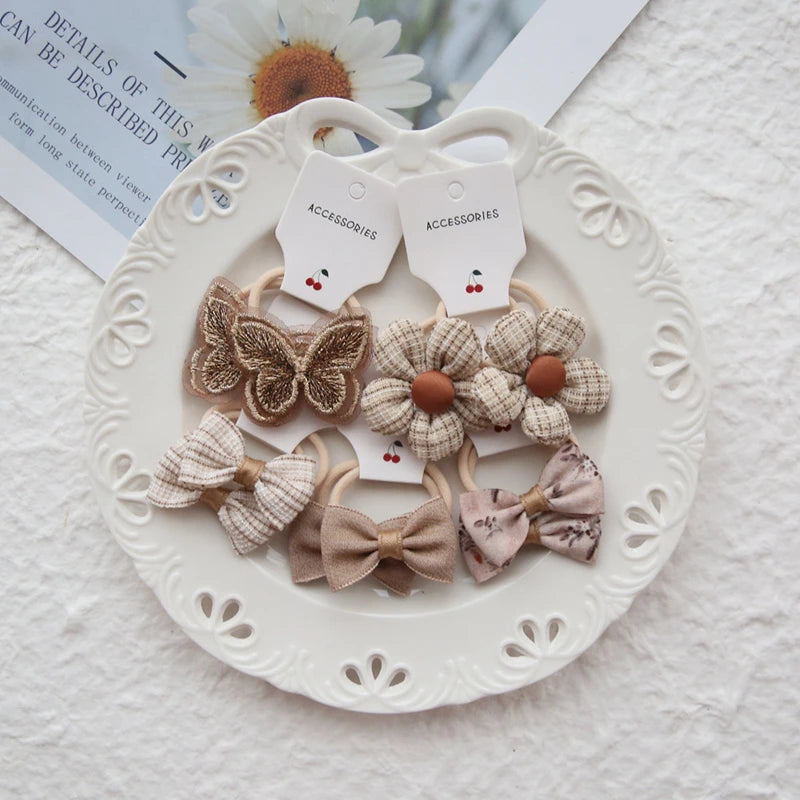 Set of 10 Cute Hair Bands – Comes with 5 matching pairs featuring flowers, butterflies, and bow-themed designs your toddler will love.
