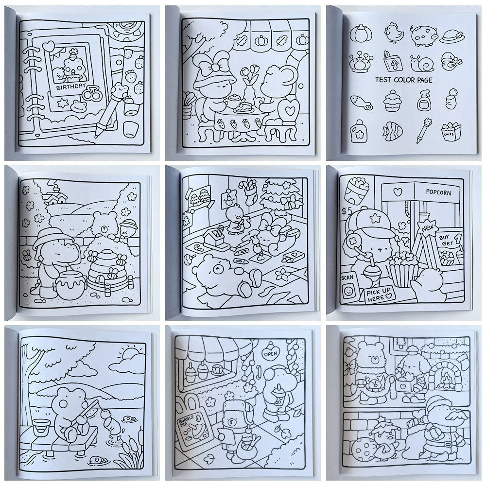 • Stress-Soothing Designs- Filled with cute, calming, and sometimes spooky-sweet pages designed to melt stress and bring instant relaxation.